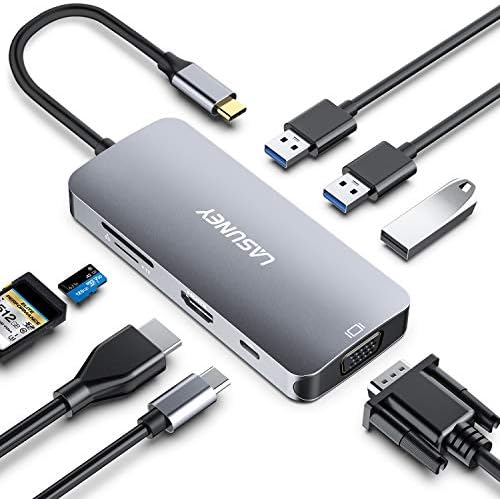 [MULTIPORT CONNECTION] LASUNEY 8-in-1 USB C Hub contains Three USB 3.Zero ports, 1 USB/TYPE-C Feminine PD charging port, 1 HDMI Port, 1 VGA Port, 1 TF SD card slot, 1 SD card slot, permitting you to glue a keyboard, USB driving force or exterior Disk for your USB-C units and supporting concurrently used. This USB C hub applies to all Sort-C laptops.