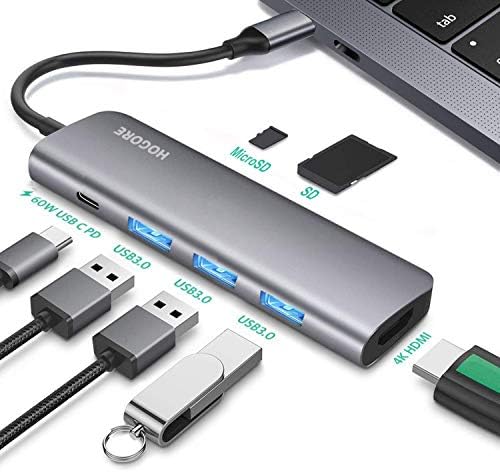 7-in-1 USB-C Hub Adapter: HOGORE 7-in-1 USBC Hub turns a USB C/Thunderbolt Three port into 7 ports together with 4K HDMI port, Three USB 3.Zero information ports, SD & Micro SD card reader slots and a USB C charging port. Plug and play, no further set up or tool wanted, really easy to make use of.
