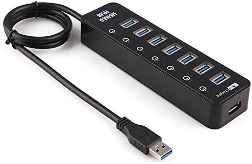 Bluwee 8-Port USB 3.zero Hub with 7pcs Knowledge Switch Ports, 1pc 5V/2.4A Good Charging Port, Particular person On/Off Switches and 5V/2A Energy Adapter(ABS Black)